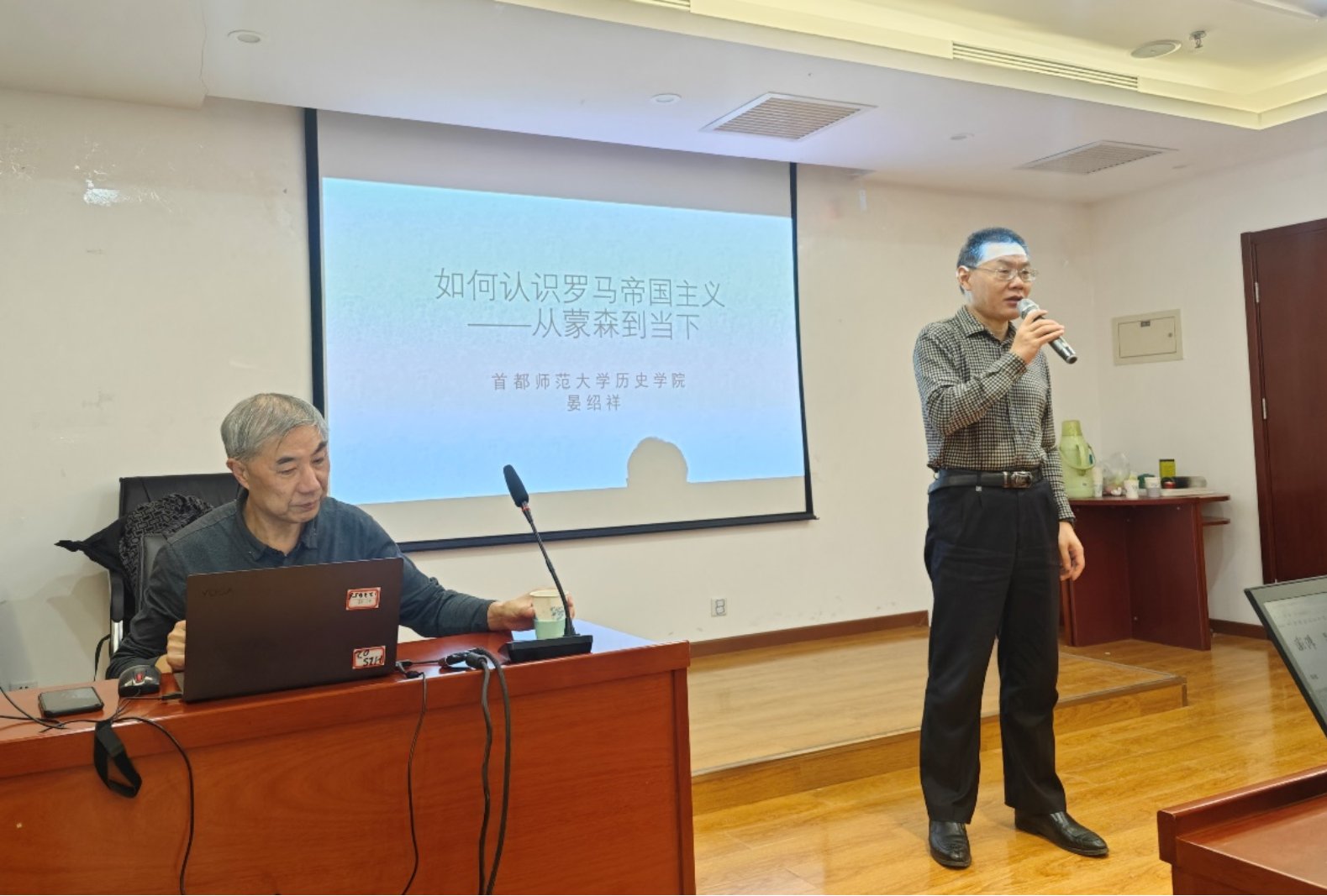202312201830分,首都师范大学晏绍祥教授应邀为北京师范大学历史学院师生作题为“罗马帝国主义从蒙森到当下”的主题讲座。此次讲座隶属于京师史学名家前沿系列讲座,由历史学院刘林海教授主持。历史学院师生齐聚北京师范大学主楼600会议室线下聆听讲座。