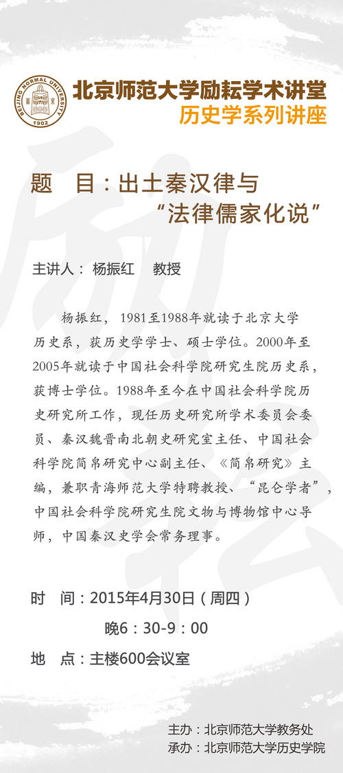 【励耘讲堂】杨振红:出土秦汉律与“法律儒家化说”