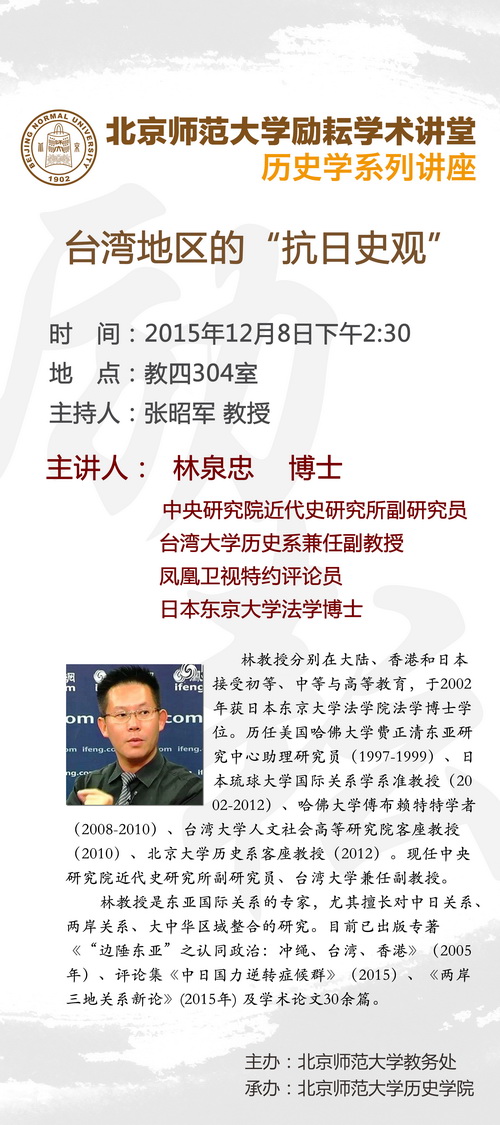 【励耘讲堂】林泉忠:台湾地区的“抗日史观”