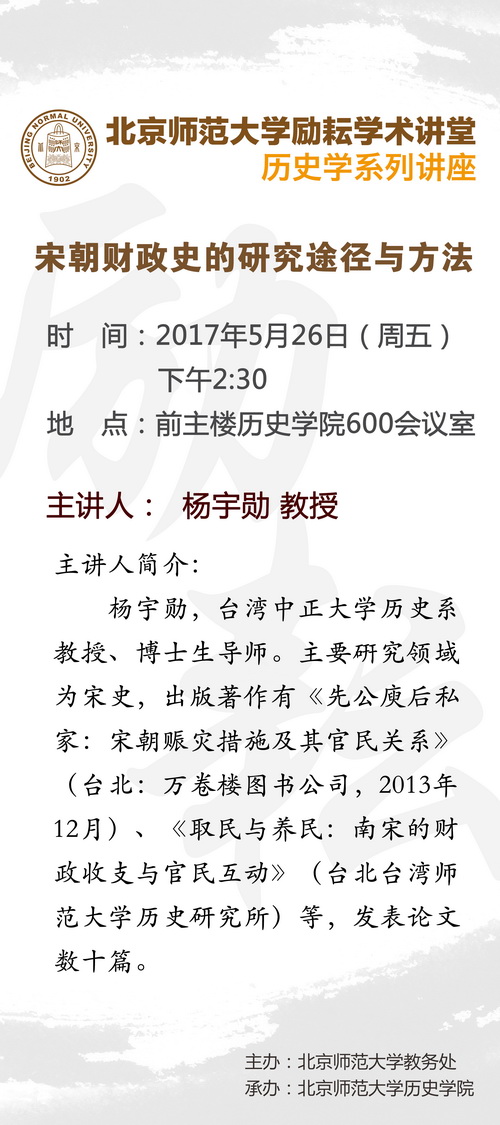【励耘讲堂】杨宇勋:宋朝财政史的研究途径与方法