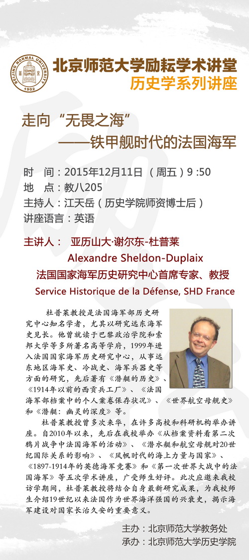 【励耘讲堂】亚历山大·谢尔东-杜普莱:走向“无畏之海”:铁甲舰时代的法国海军