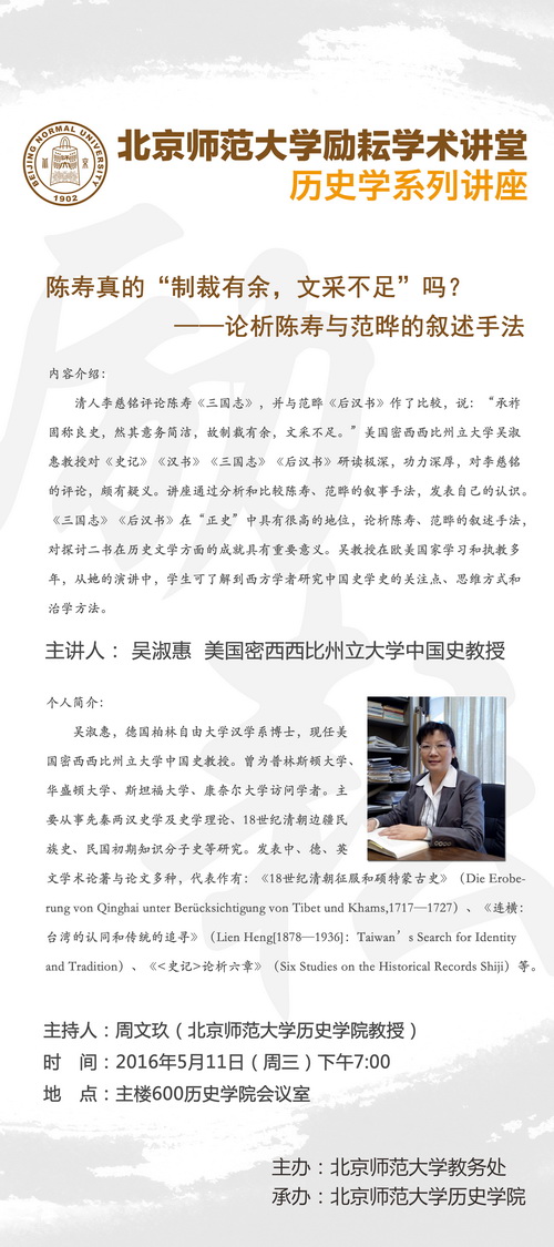 【励耘讲堂】吴淑惠:陈寿真的“制裁有余,文采不足”吗?