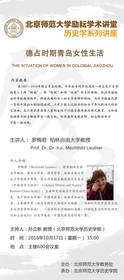 【励耘讲堂】罗梅君:德占时期青岛女性生活