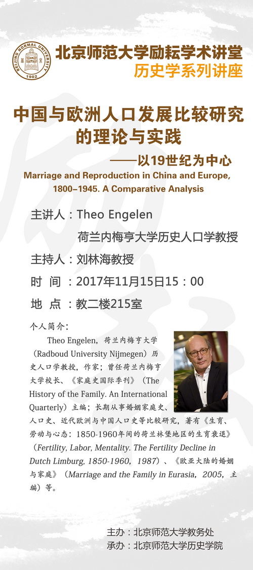 【励耘讲堂】Theo Engelen:中国与欧洲人口发展比较研究的理论与实践——以19世纪为中心