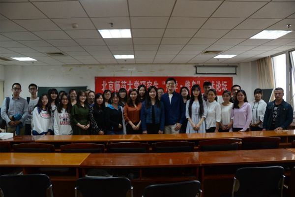 交流会首先由优秀学生向大家传授经验。博士生葛静波师兄从研究领域、书籍阅读和文章写作三个方面与大家分享了自己的学习历程;黄阳榕师姐介绍了她在台湾东吴大学交换学习的经验以及准备申请材料等相关事宜;刘晓月师姐和李嘉盈师姐主要介绍了在校外单位实践的相关情况。