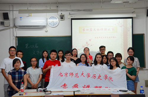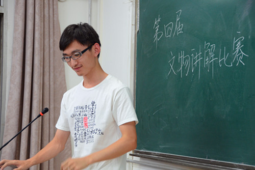 6月10日,历史学院志愿讲解队在教二204成功举办第四届文物讲解比赛。此次讲解比赛旨在通过切磋交流的方式,增进大家对历史知识和文物遗迹的了解,提高队员的讲解能力和语言表达水平。比赛邀请到讲解队前任队长宋佳霖、夏子媛,前任副队裴梓惠以及队友陈博洋担任评委,共有6名选手参赛,分别是历史学院2016级本科生陈兴、陆芳卉、李晓静、马燕妮、尹浩天和赵科薇。