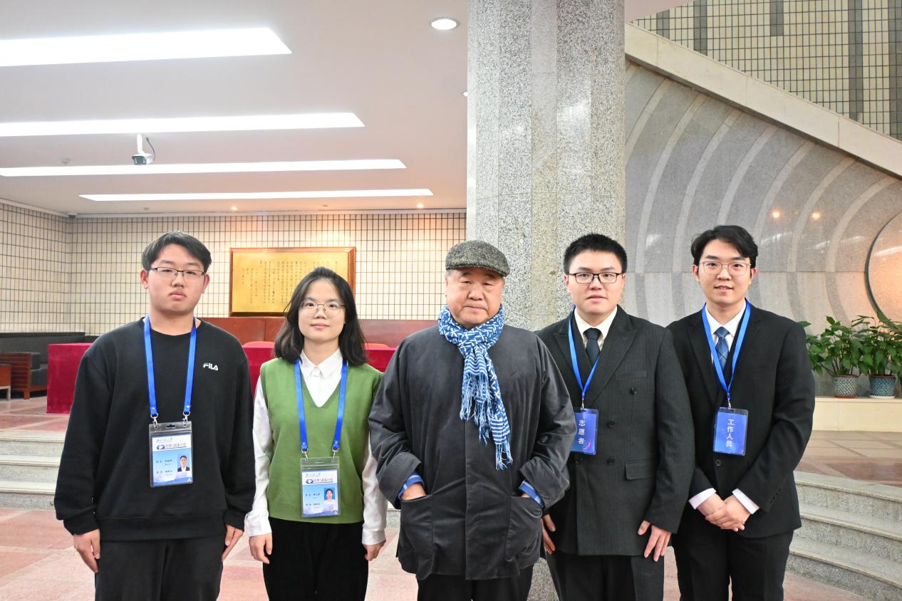 11月15日晚,由法国驻华大使馆、北京师范大学主办的“三分钟通俗易懂说论文”大赛决赛在北京师范大学英东学术会堂二楼举行。 中国教育部副部长陈杰,法国驻华大使白玉堂,北京师范大学校长马骏,北京师范大学教授、著名作家莫言等出席本次活动,“形势与政策”小组原组长许宸睿,学研专员吴怡,组长助理余子安和23级新成员代表观摩了比赛。小组成员在本次活动中拓宽了对各学科各领域的知识的了解,感受到中法人文交流的浓厚氛围,丰富了对中法学术合作的认识。在活动间隙,小组成员还与出席活动的莫言先生、庞冠群老师合影留念。