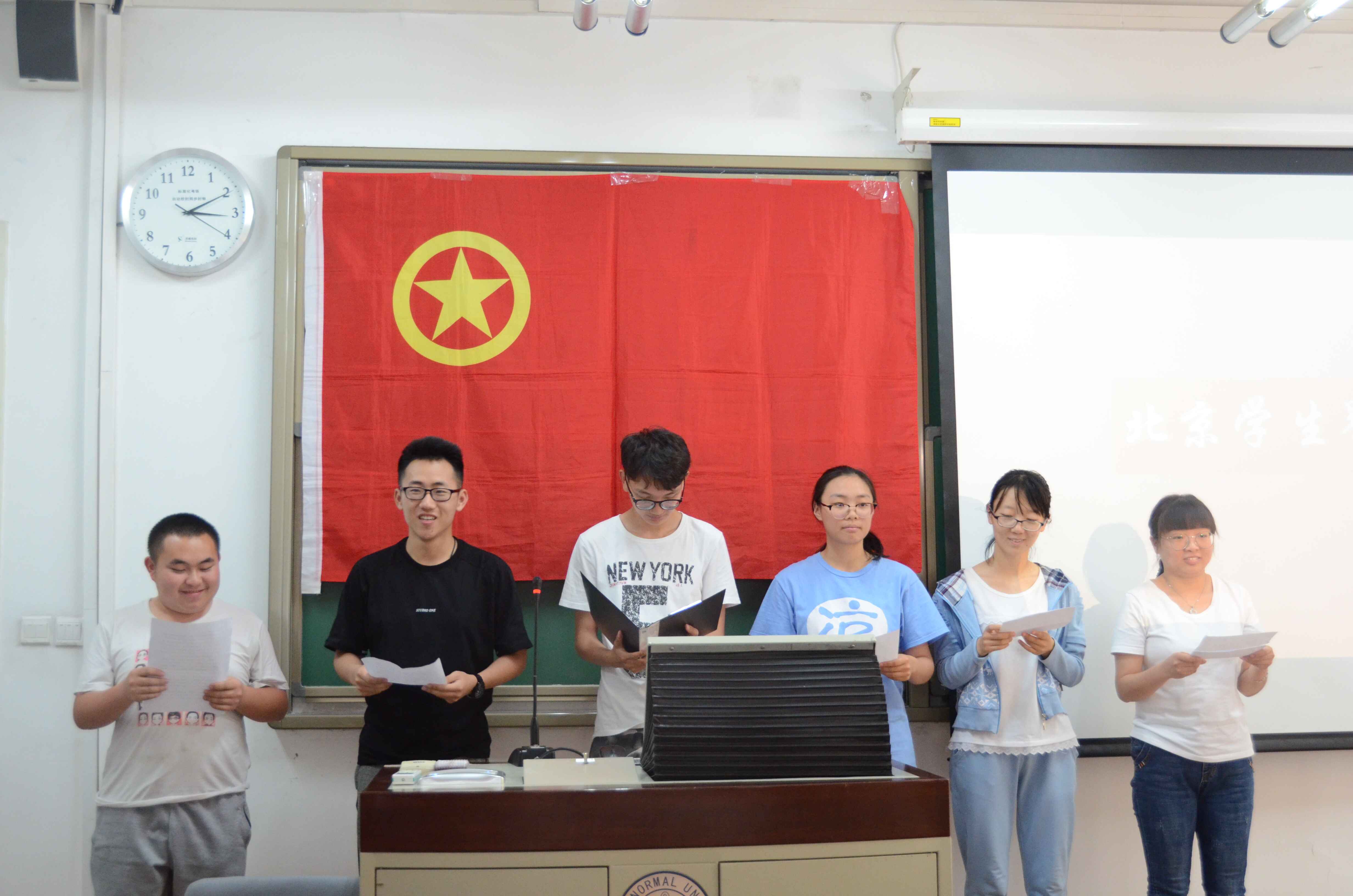 在齐唱团歌、观看团课总结视频的环节之后,团子们以寝室合作为单位,使用各种形式展示了这一年来修习团课的收获与感悟——精心制作的PPT,动情的朗诵和表演,赢得全场称赞的影片剪辑……团子们竭尽所能,展示出在团校中习得的各项技能。时间流驶,人行向前。从“学生工作概论”,到PPT设计、摄影技巧、视频剪辑、新媒体技术,再到暑期实践经验分享、活动策划培训、五四纪念讲座……我们一路走来,步步向前。