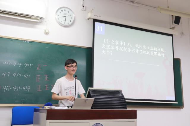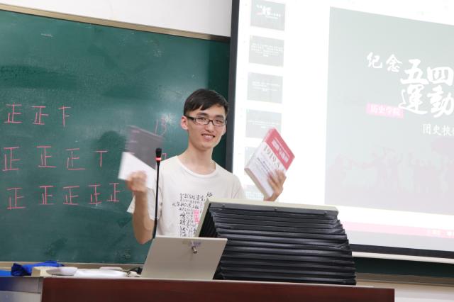 2019年5月17日晚8:00,【华体会网】2016级本科生“五四”团日活动在教二115成功举办。本次团日活动以“纪念五四运动一百周年”为主题,以团史校情知识竞赛的方式展开,竞赛题目新颖有趣,吸引了同学们的踊跃参与。
