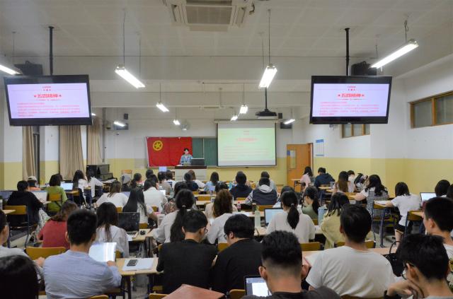 2019年5月11日晚八点,历史学院2017级本科班团支部在艺术楼401举办纪念五四运动100周年主题团日活动,历史学院17级本科班全体团员参加,17级本科班班主任李力老师出席。活动由团支书王天昊同学主持。本次团日活动按宿舍分成六组,5月初期各组学习习近平总书记在纪念五四运动一百周年大会上的讲话后,分别选择参观展览、学习先进人物事迹、舞台表演的形式进一步深化对五四运动的理解,并于5月11日晚总结和汇报学习成果。