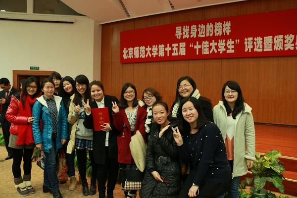 在第十五届“北京师范大学十佳大学生”评选活动中,历史学院2011级免费师范生古丽加汗.艾买提同学凭借自己的不懈努力以及沉着冷静的现场表现,以第一名的好成绩,荣获“北京师范大学十佳大学生”荣誉称号。