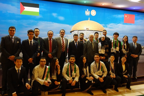 外交部部长助理陈晓东代表中方致辞,他在致辞中指出“两国方案”凝聚了巴以、阿拉伯国家以及国际社会的共同智慧和心血,必须坚定推进以“两国方案”为基础的政治解决。他表示中方始终坚定支持和推动中东和平进程,支持巴勒斯坦人民恢复民族合法权利的正义事业。巴勒斯坦驻华大使法里兹•马赫达维代表巴勒斯坦对中国人民长期的帮助表示感谢。联合国开发计划署高级顾问马克•范登宣读了联合国秘书长的贺信,贺信中写道联合国一直关注巴勒斯坦问题,并认为巴勒斯坦应尽快建立一个与以色列具有同等国际地位的主权国家。随后,阿拉伯驻华使团驻团长、约旦驻华大使叶海亚•卡拉莱发言,他指出耶路撒冷的归属问题是巴以之间的核心问题,阿拉伯国家希望能在符合1947年联合国关于巴勒斯坦分治的第181号决议的内容和精神的基础上,建立一个以东耶路撒冷为首都的巴勒斯坦国。最后,北京大学外国语学院副院长付志明发言,他回顾了历史上北京大学对中国与阿拉伯国家建立友好关系的推动作用,并展望未来在“一带一路”的建设中,北京大学能进一步与阿拉伯国家展开深层次的合作交流。