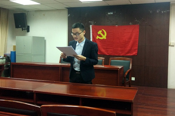 会议之始,李力老师对新学期以来的支部工作作了阶段性的总结,感谢支部委员的辛勤工作;并重申党的纪律要求,同时也表达了对新一学年支部工作的期望,希望党支部的全体成员都能够不忘初心,组织、参与好日后党组织的理论学习与实践活动。李力老师还讲解说明了“先锋党员”、“优秀学生干部”的标准与要求。在支部书记彭紫荆的主持下,“优秀学生干部”的候选人王颖怡、艾烨、赵昕昕依次发言,总结自己一年以来的工作。最终大会选举结果为彭紫荆当选“先锋党员”,艾烨当选“优秀学生干部”。