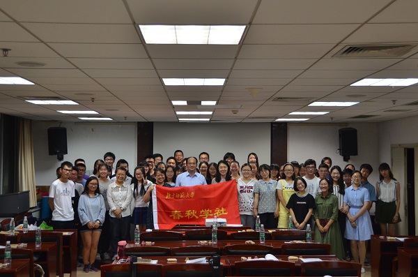 大会开始,副社长陈兴就今年学社的招新情况向老师和新社员们作了详细的介绍。随后,姜海军副院长作了讲话,他从三个方面对学社组织的一系列活动给予了高度的评价,同时也对同学们提出了自己的期望。胡小溪老师则回忆了自己和春秋学社的故事,对学社提出了新的要求和希望,李力老师也给予了学社满满的祝福。相信在老师们的鼓励和祝福下,学社一定会办出更好的活动,取得更优秀的成绩。至此,全员大会告一段落,全体社员和老师们合影留念,并欢送嘉宾离场。