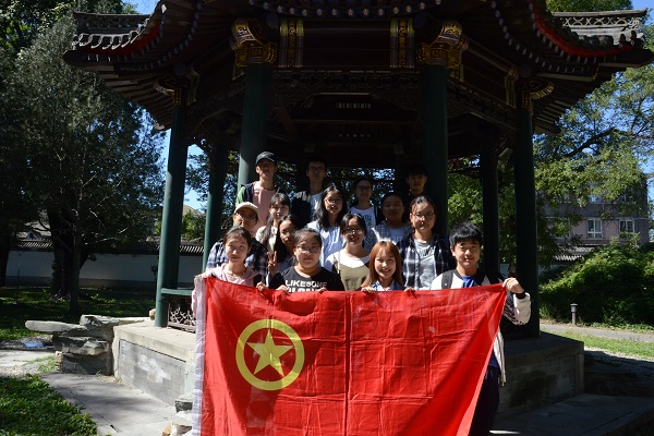 在夏末秋至的时节里,在和煦温暖的阳光下,全体成员围坐在花园的圆亭中,在组织委员蔡平的带领下学唱了《光荣啊,中国共青团》、《国际歌》、以及分团委改编的曲目《最美的期待》。同时,副书记邢海为成员们讲述了《国际歌》背后的故事,引发了同学们的共鸣。成员们认真投入,氛围良好。