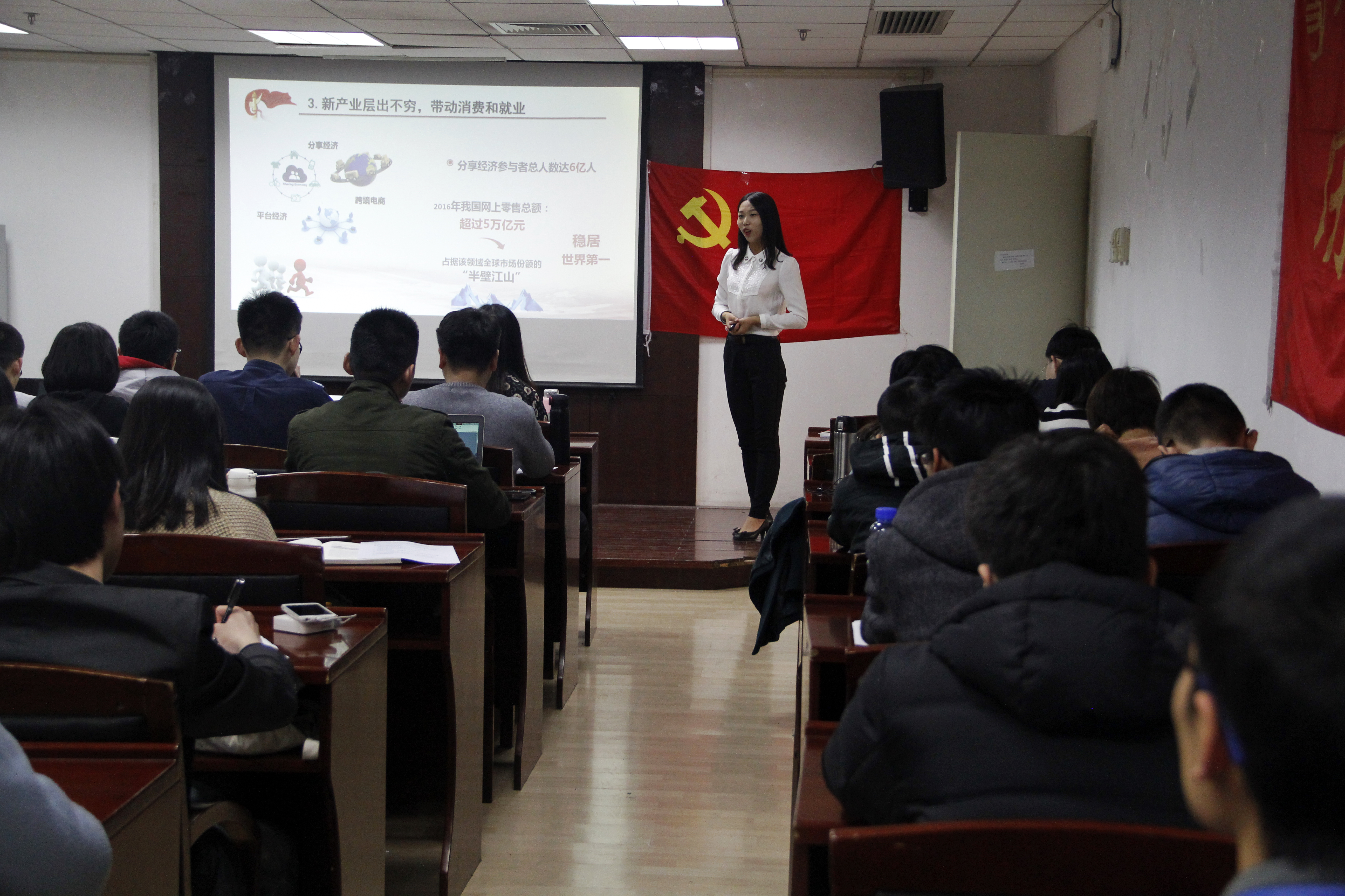 11月19日,历史学院2016级硕士生党支部在主楼600教室举办了主题为“学习十九大精神,开启时代新征程”的专题宣讲会。宣讲会邀请了北京高校学习习近平新时代中国特色社会主义思想博士生宣讲团讲师历史学院2017级博士研究生张文博、马克思主义学院2016级硕士生冯楠楠、梁瑶。宣讲会还邀请了政府管理学院国际关系硕士党支部、历史学院本科生党支部的部分成员共同参与。主持人由历史学院2016级硕士生党支部宋典同学担任。