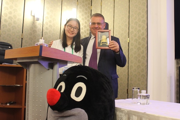 路德维特参赞与大家一同观看了介绍欧盟和捷克共和国的短片,并为大家准备了有关欧盟知识的小测试。沐浴在庄重恢宏的欧盟盟歌《欢乐颂》音乐中,同学们进一步理解了欧洲人民为谋求国家联合、世界和平所做出的不懈努力;徜徉于自然与人文编织的和谐长卷里,同学们直观地碰触到了一个五彩斑斓的捷克——她不仅有油画般优美的湖光山色,也有着底蕴深厚的历史文化名城以及富有活力的现实生活。