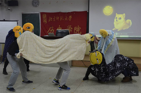 精彩的节目中间,还穿插了抽奖及游戏环节。精心准备的游戏《Ta是谁》要求参加者根据逐条给出的条件来猜同学,在紧张的游戏之余也让大家加深了对彼此的认识与了解。游戏之后,开始第二阶段的节目,首先是许洪冲同学为大家带来的的京剧唱段《三家店》,许洪冲同学的唱功令大家佩服,大家纷纷鼓掌赞赏。接下来是王菲等三位同学带来的舞蹈《小小鹿》,可爱的风格戳中大家的萌点,犹如三只活蹦乱跳的小鹿。舞蹈之后是来自北航的梁野同学与李翰卿同学带来动听的歌曲《屋顶》,两人配合默契的表演也为大家带来暖暖的爱意。来自魔术社的陈俊龙同学为大家带来了精彩又幽默的魔术表演,激起大家浓厚的兴趣。李书贤同学为大家带来了经典歌曲《亲密爱人》,吸引大家挥手、合唱。舒缓的音乐过后,钱静等三位同学伴随着欢快的音乐为大家带来宅舞《极乐净土》,带领大家进入二次元的世界。