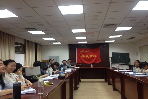 4月25日晚,春秋学社抗战系列第三次读书会在主楼600教室召开,重点研读毛泽东《论新阶段》一文。此次读书会由祁逸伟主持,2013级党支部人员也出席了读书会。