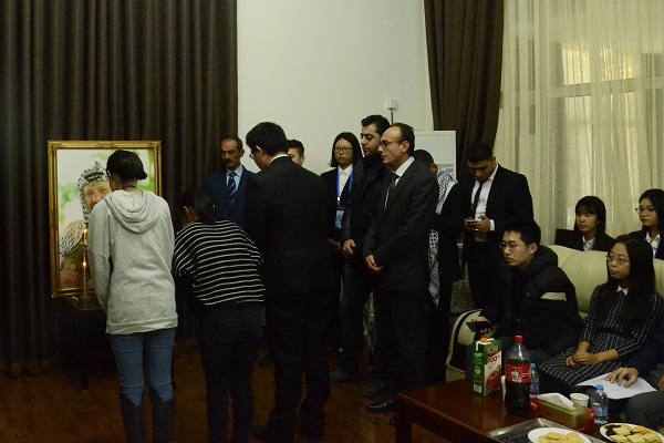 2016年11月12日上午,应巴勒斯坦国驻华大使法里兹·马赫达维(FarizMahdawi)邀请,我院“形势与政策”小组成员代表赴巴勒斯坦国驻华使馆纪念已故巴勒斯坦民族权力机构主席亚西尔·阿拉法特逝世十二周年。