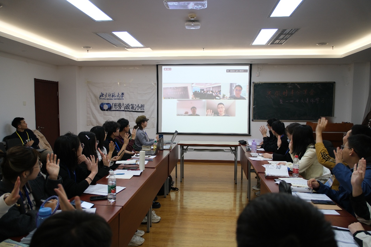 寒假期间,小组2024级新成员围绕近期国际时政前沿热点选题,基于新闻资讯阅读、整理,完成并提交了时事分析书面作业。张熹对同学们的作业进行了简要点评讲解,并邀请樊晨曦、伍泽榕、刘臣远和李彬镜四位同学上台进行时事分享。