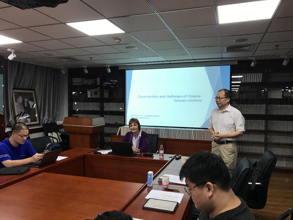讲座中,罗梅君教授重点回顾了中德关系的发展历程:19世纪60年代,普鲁士为开拓东方,派遣远征队,与中国签订通商条约;19世纪末,威廉二世推行世界政策,占领胶州湾,进行殖民经营;1949年新中国成立,东德和西德的对华关系经历复杂变化;当今时代,中德经济联系持续深化,文化交流不断扩展,2014年中德双方将双边关系提升为“全方位战略合作伙伴关系”,在气候政策、安全问题、反恐等议题上保持密切沟通,日益增长的经济依存成为中德关系发展的基础。罗梅君教授还就促进中德友好关系提出具体建议,她强调要增进彼此充分了解,包括对19世纪后期殖民时代以来的不平等的中德关系史的认识,此外还要将对方视为平等伙伴,克服中心主义影响;加强多极世界合作观念,拒绝遏制政策。
