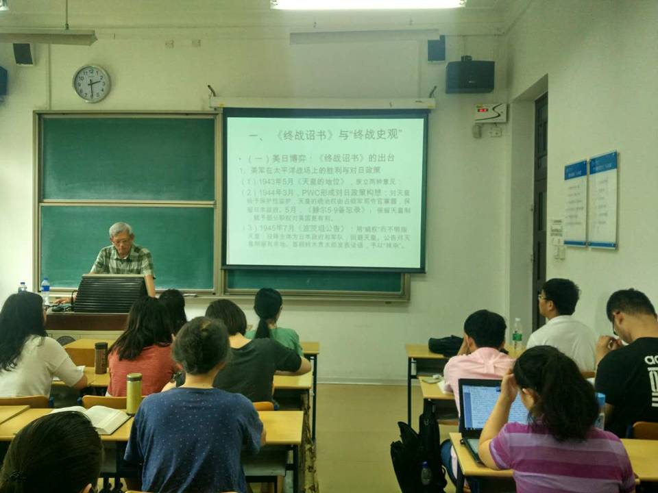 2017年6月29日上午,北京大学历史系宋成有教授应邀来到【华体会网】研究生课堂为我校研究生作了一场题为《“终战史观”评析:战后日本右翼历史观揭底》的学术讲座,参加聆听讲座的40余位研究生、博士生和部分教师来自校内各个院系,还有来我校参加访学进修的其他兄弟院校的部分学者。