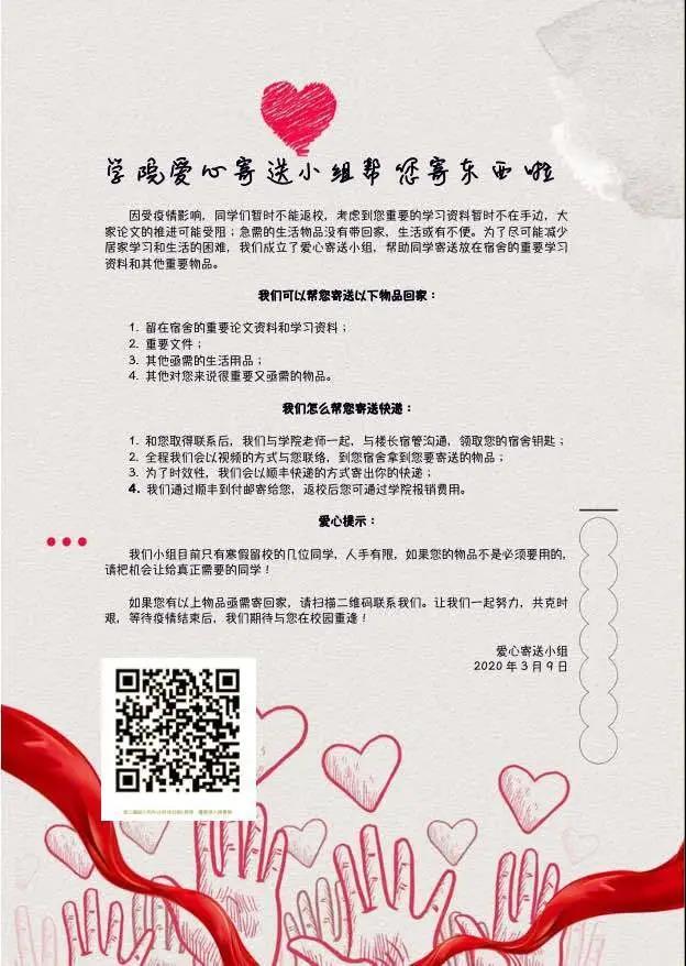 在历史学院党委的号召下,各师生支部鼓励支部成员积极参与疫情防控工作,为抗击疫情做力所能及的事,尽一份自己的力量。面对新冠疫情下滞留湖北师生口罩资源匮乏的情况,历史学院积极联络,给他们寄送口罩。3月初,在历史学院党委号召下,在校学生党员积极行动起来,成立历史学院爱心寄送小组,帮助不在校的同学,尤其是毕业班同学寄送必需物品。小组共完成23次物品寄送,缓解了部分同学的燃眉之急,受到了老师与同学的好评。学校党委下发《关于组织党员自愿捐款支持新冠肺炎疫情防控工作的通知》,历史学院师生党员积极响应号召,爱心助力,自愿捐款,为奋战在“抗疫”一线的医护人员表达了温暖的问候和崇高的敬意。