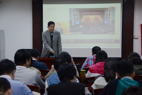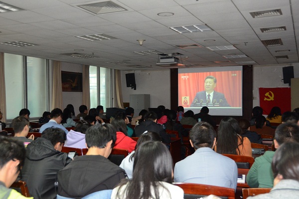 10月18日上午,中国共产党第十九次全国代表大会在北京人民大会堂隆重开幕。历史学院广大师生高度关注这一历史性盛会,通过各种媒体收听收看大会实况直播。历史学院分党委书记郭家宏和近百名师生党员和积极分子代表一起,在主楼600教室通过视频观看了大会现场直播。