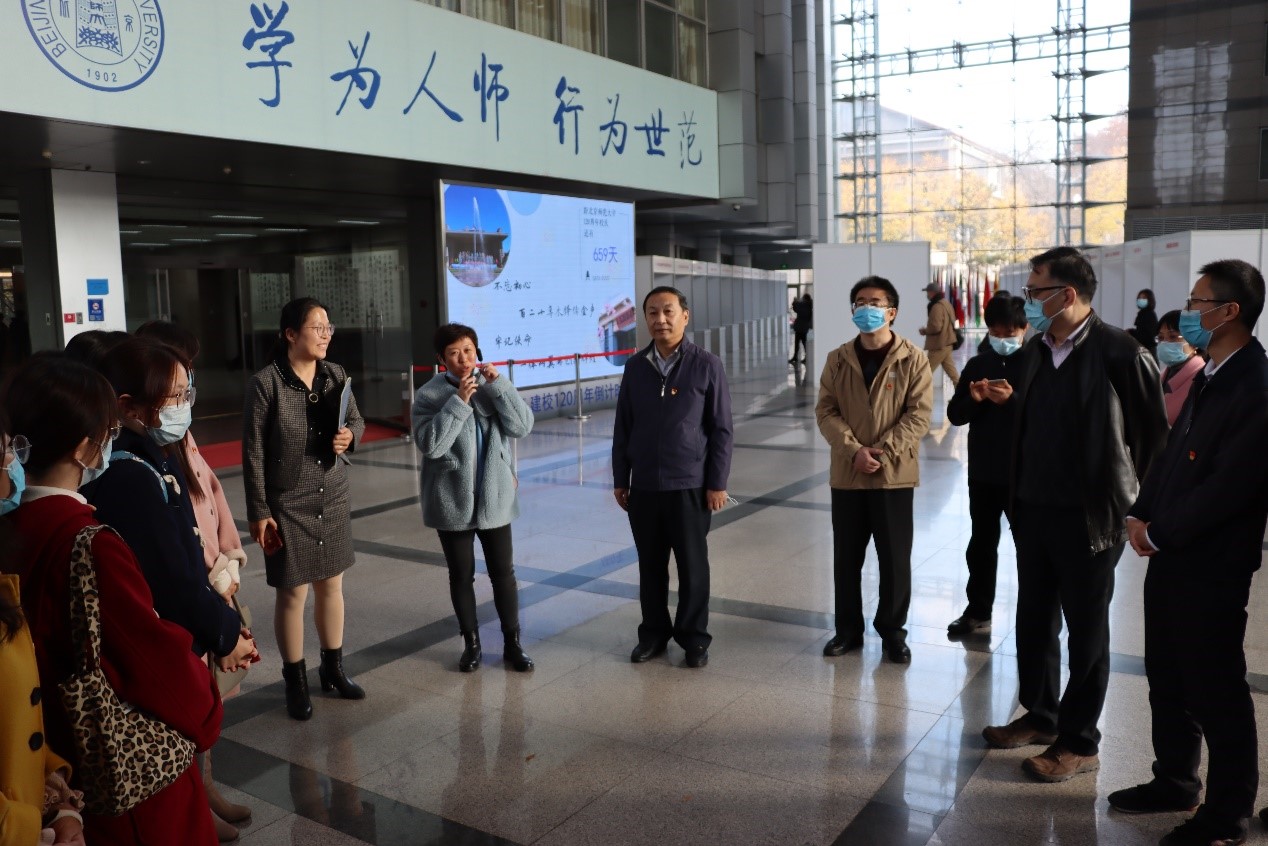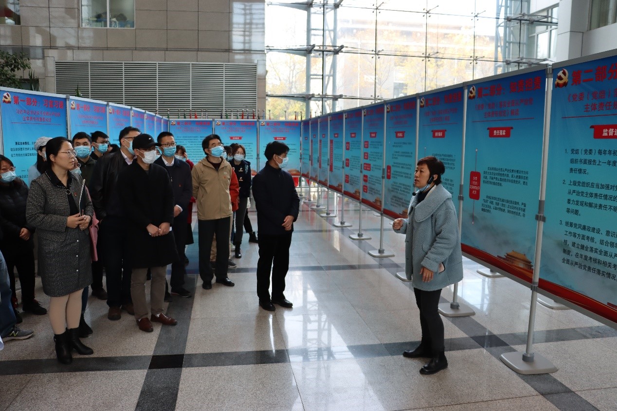 为教育引导学院领导干部和全体师生,牢固树立“四个意识”,做到“两个维护”,知敬畏,守底线,不断增强履职尽责本领,提高应对风险挑战的能力,历史学院党委于2020年11月19日,组织全体党政班子、党委委员、师生党支部书记、支部委员在主楼四季厅参观“提高政治站位,落实主体责任,推动全面从严治党向纵深发展”主题展览。学校纪委办公室主任韩晓蕾老师为参观师生进行了讲解。