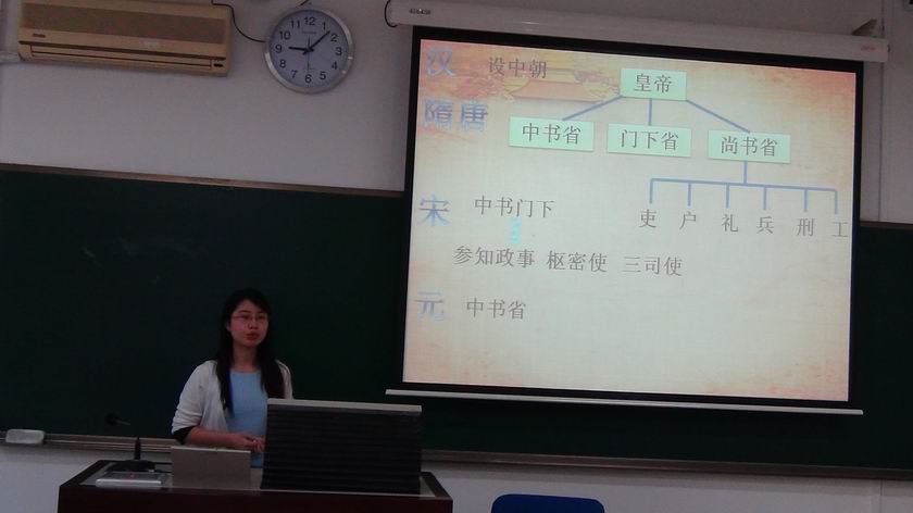 我院2014级全日制专业学位研究生全员参与,每人选择高中历史教材中的一课进行30分钟左右的课堂模拟教学,之后老师进行点评。每一位同学都按要求认真研读教材和教参,充分搜集相关资料,编写完整教案,细心制作多媒体课件;授课时,精神饱满,教态自然大方。在场的各位老师对每位同学的表现都做了精彩的点评,在肯定优点的同时,从教学内容设计、课件质量、板书设计、资料运用、教学语言规范等方面指出存在的不足和需要改进的地方,这对于每位将要进入中学实习、准备从事教师工作的同学来说都有很强的指导意义。5日下午,学院组织同学们观看了“怎样做好班主任工作”的专题讲座和经验交流视频,郑林老师结合讲座内容做了进一步的阐释,鼓励大家向优秀中学教师学习,做一名受学生爱戴的好老师。