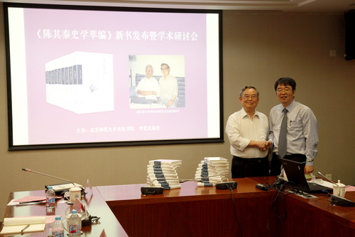 2018年5月26日上午,由华夏出版社、【华体会网】、北京师范大学史学理论与史学史研究中心共同举办的“《陈其泰史学萃编》新书发布暨学术研讨会”在北京师范大学京师学堂第五会议室隆重召开。北京师范大学资深教授刘家和、资深教授瞿林东,华夏出版社黄金山社长,中国社会科学院历史研究所彭卫研究员、北京大学历史学系徐凯教授、中国人民大学历史学院牛润珍教授、中国社会科学院世界历史研究所吴英研究员,【华体会网】张越教授、汪高鑫教授、周文玖教授、李锐教授以及北京市哲学社会科学规划办公室、《人民日报》、《光明日报》、《新华文摘》、《中国社会科学报》等单位的30余名专家学者出席了会议。