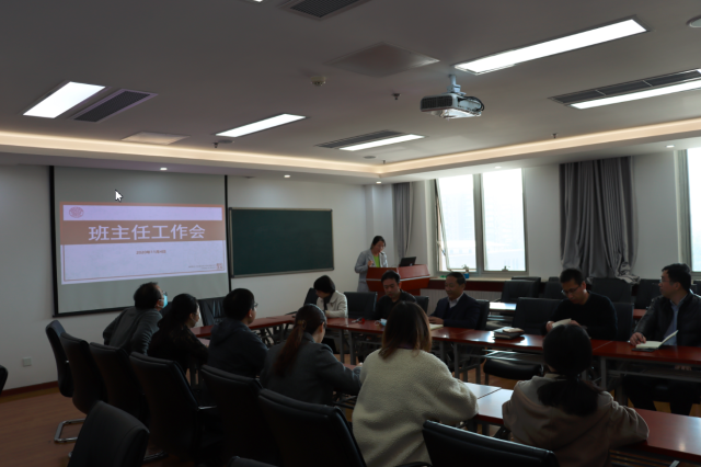 赵云慧首先向大家传达了学校党委书记程建平书记、副书记李晓兵关于学生工作的要求:提高政治站位、增强业务本领、充分总结经验、不断追求卓越、加强校园安全、繁荣校园文化、促进创新发展等。同时通报了学院近期学生工作安排,强调各班主任要充分利用学院生活指导室、学业辅导室等平台和资源,在关注学生身心健康、做好宿舍安全建设方面下功夫。