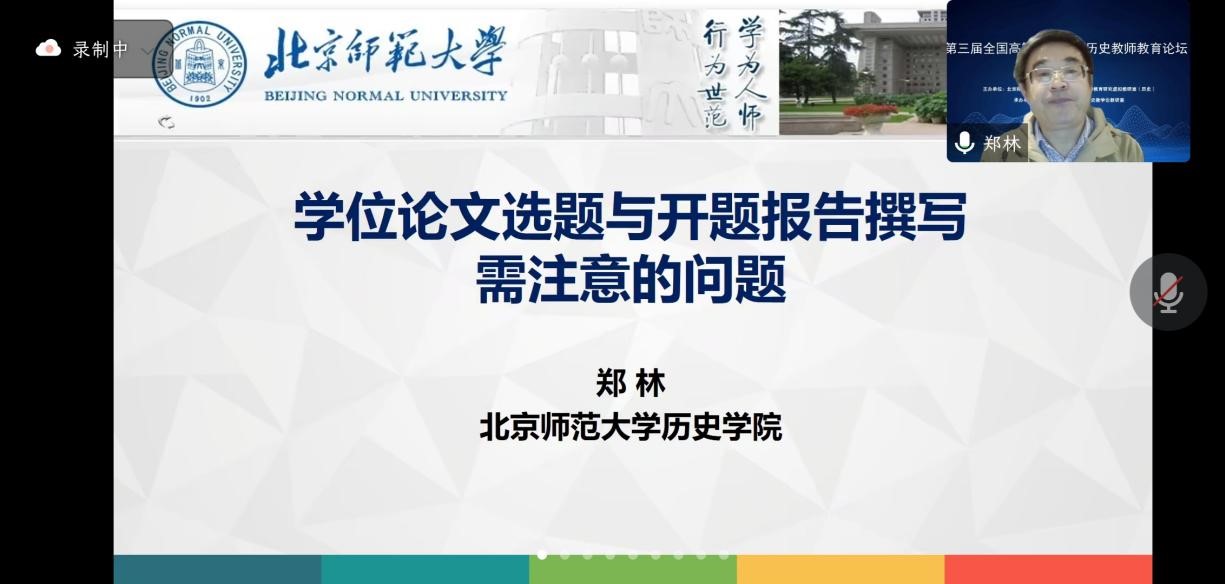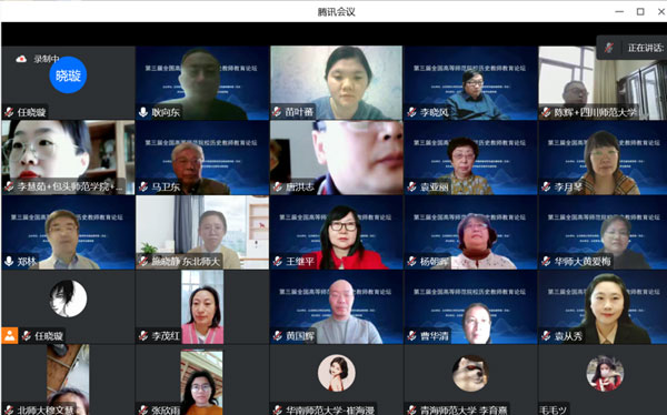专题三由首都师范大学杨朝晖教授主持,青海师范大学袁亚丽教授、边芸副教授,东北师范大学施晓静博士、四川师范大学杨友红博士、长江师范学院张丽老师、阿坝师范学院颜仁荣老师聚焦民族地区师范院校的历史教师教育实践探索以及青年教师的成长,对所在院校具有民族和地方特色的历史教师教育课程与教学实践做了介绍、总结和反思。