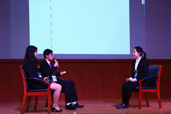 第四组代表、历史学院2017级高湘婷、陈力文和哲学学院2017级王树涛三位同学以“新闻连线”的形式向大家做了《文化强国——用中国风装点世界舞台》的展示,他们就中国如何展示自己的文化、中国的文化输出是不是文化侵略等重要问题展开讨论,表达了我校大学生了对十九大中习总书记提出的“建设文化强国”这一目标的深刻理解。