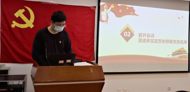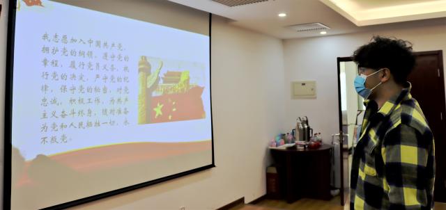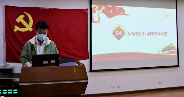 陈楠峰同志在宣誓后代表全体新入党预备党员发言,表达入党的激动与忐忑,认为入党既是入党程序的结束,更是为共产主义事业奋斗的政治生命的开始,承诺将会以更加饱满的热情投入到党组织的教育培训活动中,提升自身的政治素养。