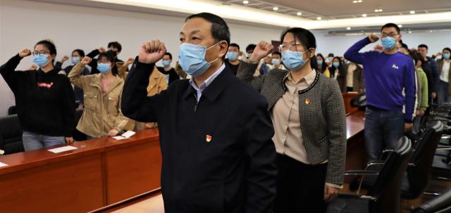 2021年3月24日下午15点30分,历史学院新发展党员入党宣誓仪式在主楼600召开,历史学院党委书记耿向东老师、党委副书记赵云慧老师莅临、党建组织员潘若天老师主持本次仪式,新一批入党的预备党员参与仪式。