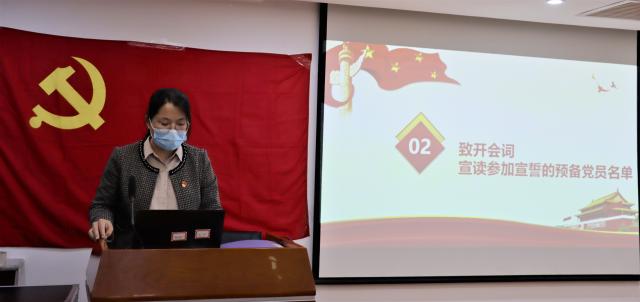随后赵云慧老师表示对新发展党员入党的祝贺,强调入党仪式的教育意义,宣布参加宣誓的预备党员名单。