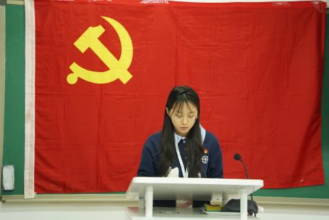 随后,学生党员代表2022级本科生杜泽慧同学进行了《志愿点亮青春,行动诠释担当》的主题宣讲。她结合担任“纪念中国人民抗日战争暨世界反法西斯战争胜利80周年纪念大会”志愿者的珍贵经历,深情讲述了从前期筹备到现场服务的点滴感悟,分享了在亲历国家盛典中获得的深刻精神洗礼。她的故事生动诠释了“奉献、友爱、互助、进步”的志愿精神,展现了历史学院青年将爱国情、强国志转化为报国行的自觉行动,其真挚的感悟与昂扬的风貌赢得了现场阵阵掌声。