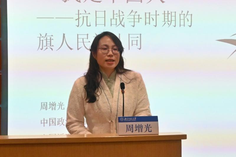 开幕式上,中国政法大学马克思主义学院周增光老师应邀作了题为《“我是中国人”——以抗日战争时期的旗人民族认同为例》主旨报告。周老师以其深厚的史学功底与理论视野,史论结合,通过缜密的史料分析,生动展现了在全民族抗战的宏大叙事下,旗人群体如何超越族群界限,将自身命运与中华民族整体命运紧密相连,构筑起牢不可破的民族认同与国家认同。报告立意高远、论述精辟,为与会师生深刻理解中华民族共同体意识的历史生成提供了宝贵的学术启迪与思想滋养。