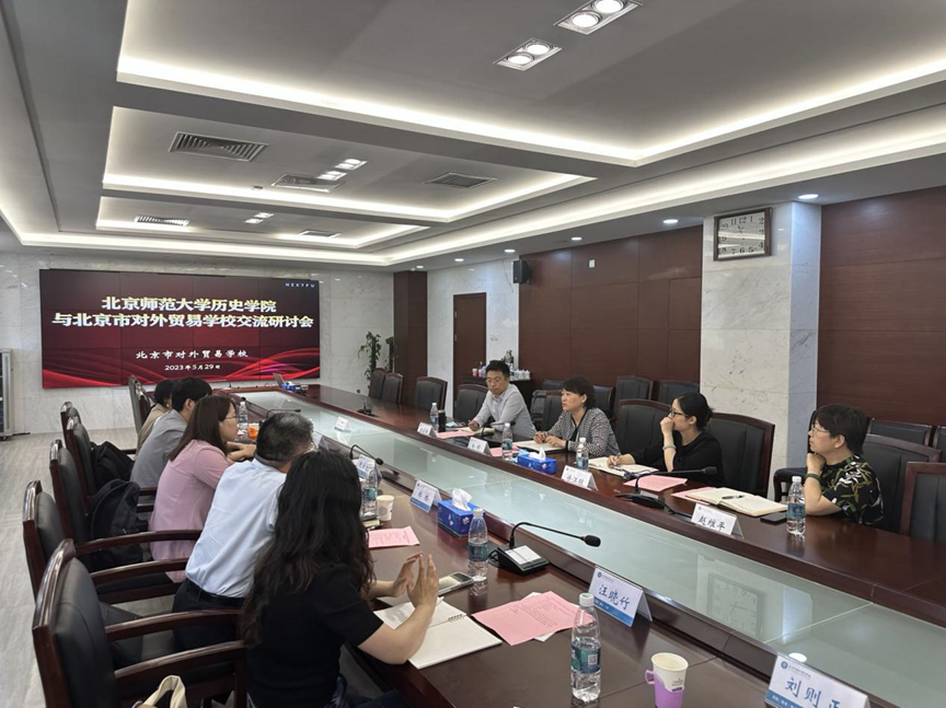 在随后的座谈会上,徐明介绍了北京市对外贸易学校发展规划、历史学科建设以及教师需求情况、主题教育开展情况。她表示,北京市对外贸易学校将以此次调研为契机,双方在实践育人、在历史教学方面能够进一步深化合作。赵云慧介绍了北师大历史学院人才培养、学科建设、社会服务有关情况,表示将进一步加大历史学院对北京市对外贸易学校历史教学的支持力度,助力历史教学质量进一步提升,希望双方在历史教学培训、学生就业与实践教学基地等方面开展更广泛而深入的合作。郑林对北京市对外贸易学校的历史教学建设给予高度肯定,并希望双方在教师培训与课题调研等方面进一步合作。与会师生围绕历史教材与历史教学、学生就业与实习实践合作等问题进行了深入探讨和交流。