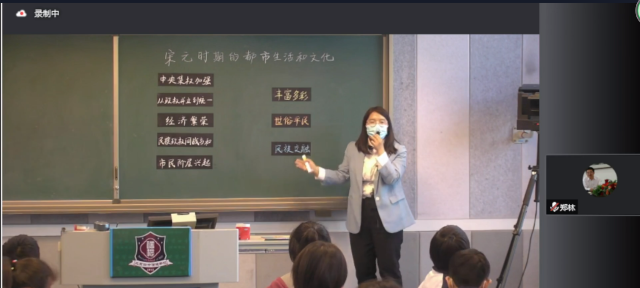 北京四中璞瑅学校李洁云老师展示七年级下册《宋元时期的都市生活与文化》课堂教学实录,之后进行说课。北京教育学院丰台分院历史教研员朱致瑛老师从精准立意是课堂的灵魂、教学目标是行动的靶向、情境创设是激发思考的途径、优质问题是课堂的关键、有效活动是展示的平台、科学评价是效果的保障6个方面对本课的教学评一体化设计进行了点评。