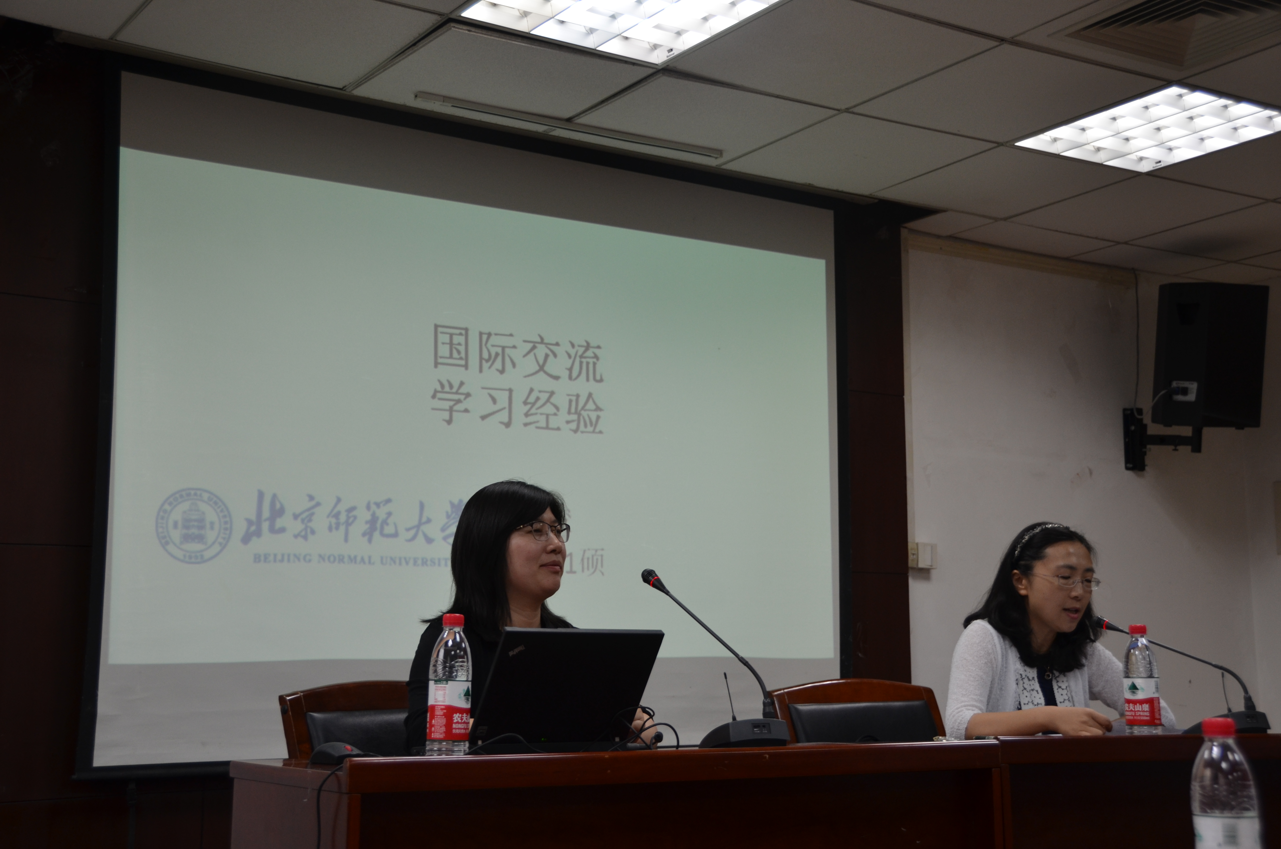 郭俊老师从人生经历、学习方法、留学经验和就业选择等多个角度和同学们分享交流了自己的宝贵心得。首先是人生经历,郭俊老师回忆了从北师大到国外的学习生活经验,表达了自己对母校和师长的感恩,同时也鼓励同学们尽量多方面的发展自己。随后老师提到,在学习过程中,知识不是最重要的,学习能力的培养才是最重要的,会使我们受益终身。在学习方法方面,老师建议大家多和同学师长交流,多读书以提高自己的思考能力和辨别能力,这个过程中我们也可以找到自己的兴趣所在。在留学经验分享时,老师特别提到英语的重要性。同学们对老师2014年获得美国纽约州立大学宾汉姆顿分校会计专业博士学位的经历颇感惊讶,老师提到是北师大的求学为她的新专业打下了基础,同时也培养了她的教学研究能力。最后,郭俊老师和同学们分享了国外研究生院的申请流程和将来的就业问题,鼓励大家给自己更多的选择。分享结束后同学们积极向老师提问,就出国留学和学习方法等方面请教了郭老师,老师也做了耐心细致的解答。