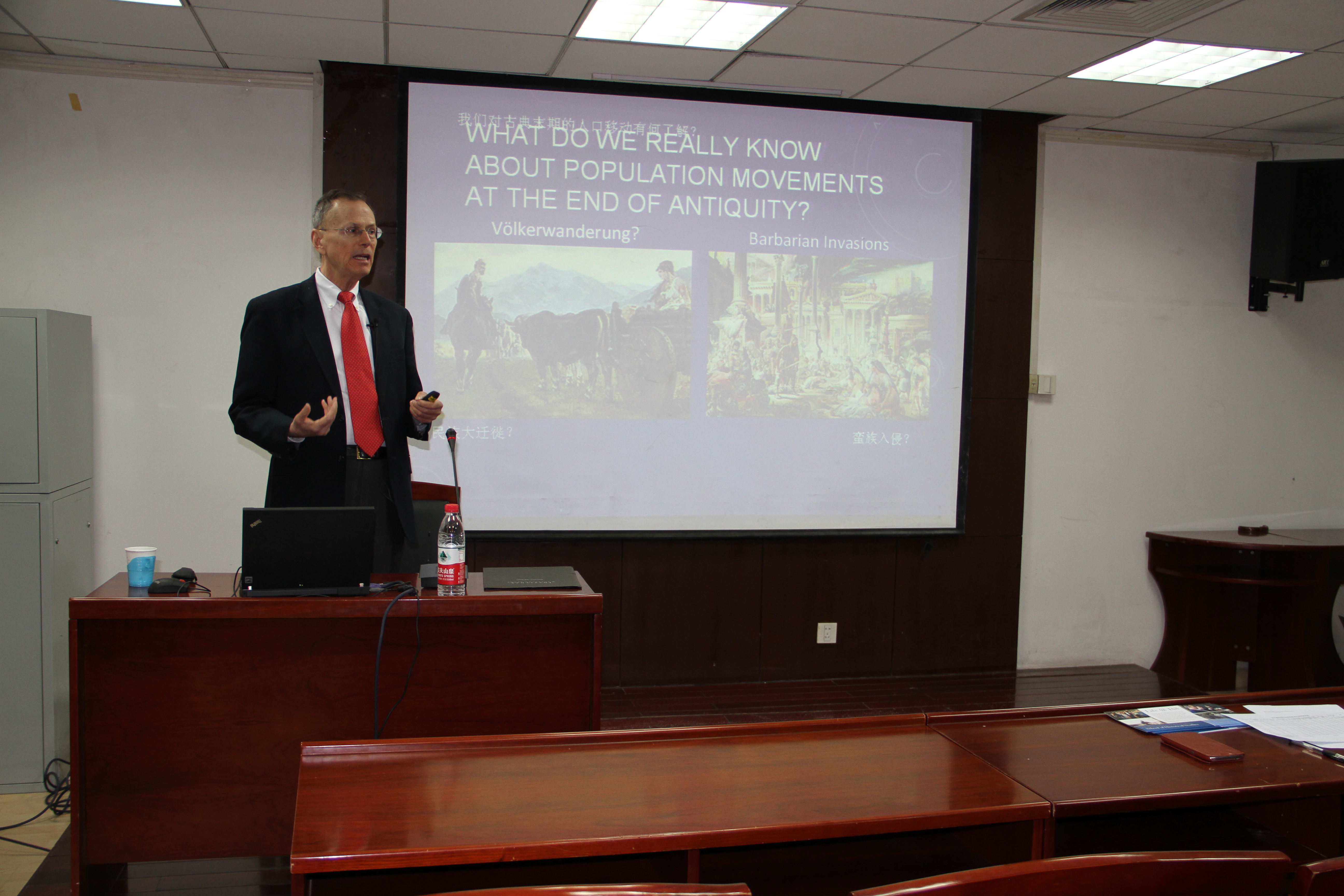应【华体会网】世界古代史教研室刘林海教授邀请,美国普林斯顿高等研究院历史学教授帕特里克·J.盖瑞(Patrick J. Geary)先生于2016年4月12日在主楼600会议室作学术讲座,题目为《由基因史评估蛮族迁徙:问题与可能》。世界古代教研室侯树栋教授、刘林海教授等老师及学生50余人聆听了讲座。