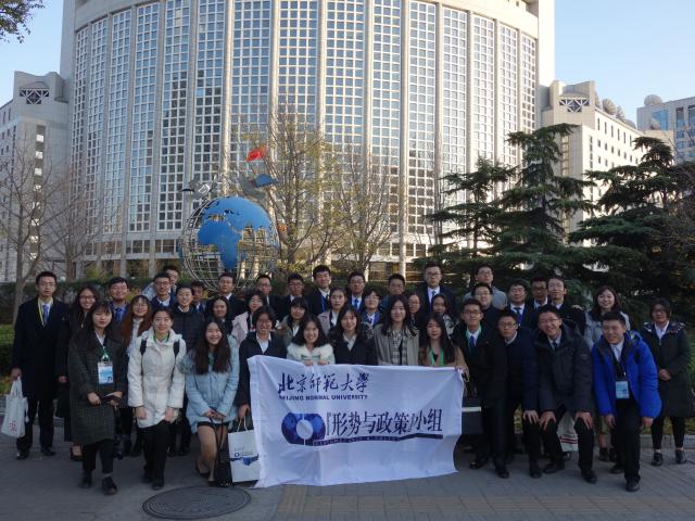 2018年11月21日,我院“形势与政策”小组成员应邀旁听当天下午的外交部例行记者会,并在会后与外交部新闻司相关人员进行了深入的交流。历史学院2018级本科生班主任胥晨曦老师,“形势与政策”小组第十二届领导团队全体成员、前组长刘畅、前常务副组长徐子钧、学研顾问杨培艺、赵文博、宣传顾问陈子梁等参加活动。