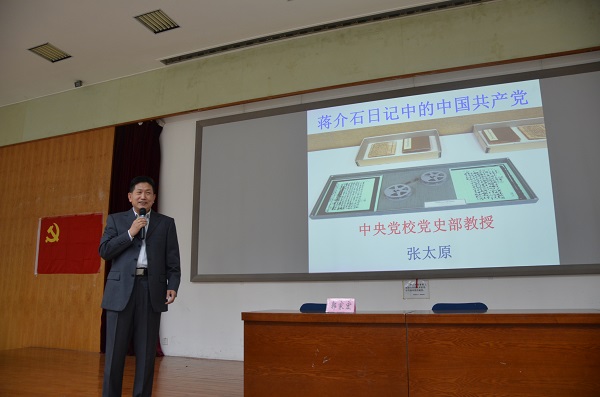 4月7日下午,【华体会网】二级党校在教九楼502室举办题为“蒋介石日记中的中国共产党”专题讲座。本场讲座由中共中央党校党史教研部副主任张太原教授担任主讲,来自历史学院和古籍与传统文化研究院的近200位教工与学生党员以及入党积极分子参加了此次讲座。讲座由历史学院分党委书记郭家宏主持。