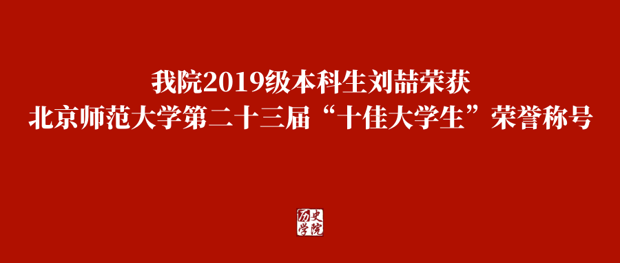 我院2019级本科生刘喆荣获北京师范大学第二十三届“十佳大学生”荣誉称号